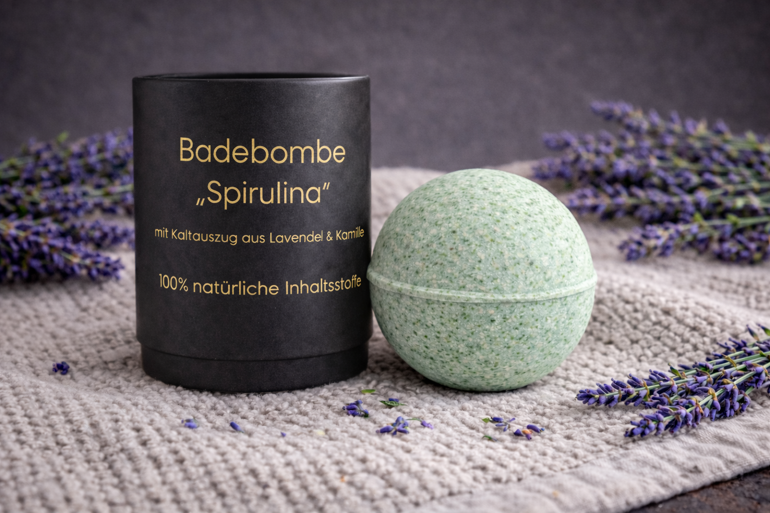 Badebombe für empfindliche Haut mit Lavendel und Kamille steht für eine sanfte, natürliche Pflege und eignet sich für entspannte Momente im Alltag.