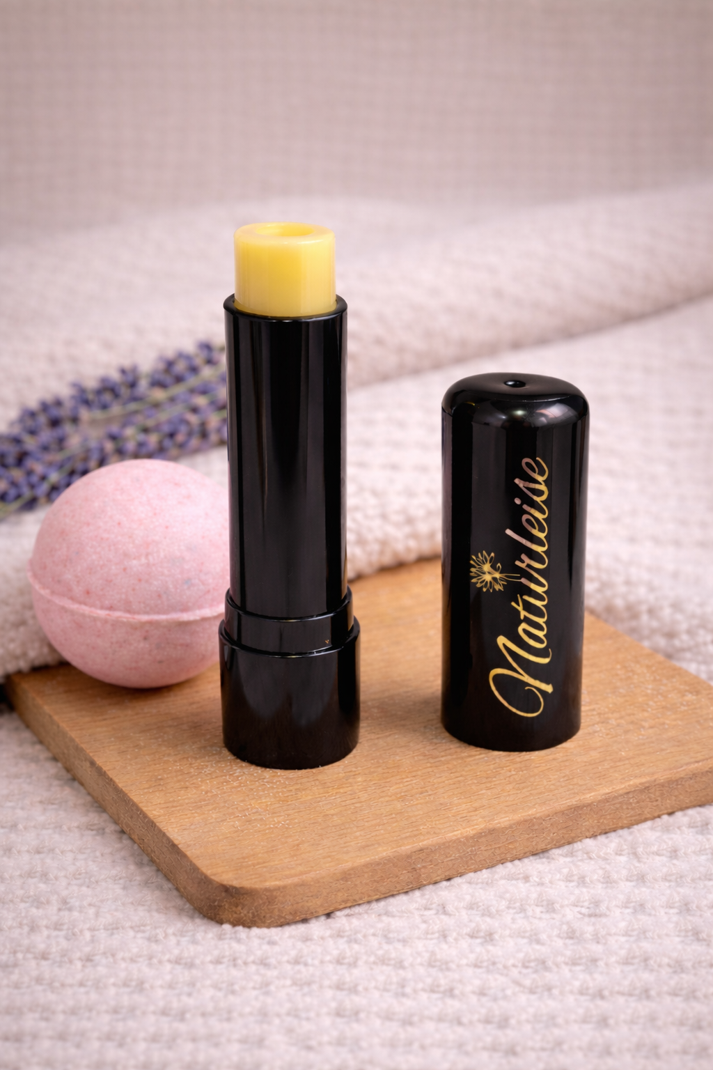 Badebombe für empfindliche Haut & Lippenpflegestift Sensitiv. Natürliche Pflege für die ganze Familie.