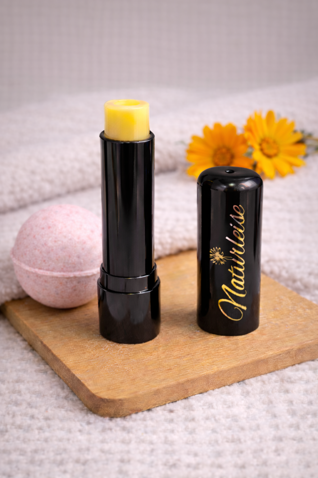 Badebombe für empfindliche Haut mit Ringelblume und Kamille ist Teil dieses liebevoll zusammengestellten Pflegesets und steht für eine sanfte, natürliche Pflege.