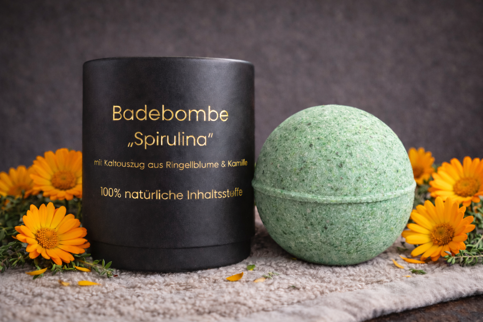 Badebombe für empfindliche Haut – natürliche Hautpflege mit Ringelblume und Kamille:
