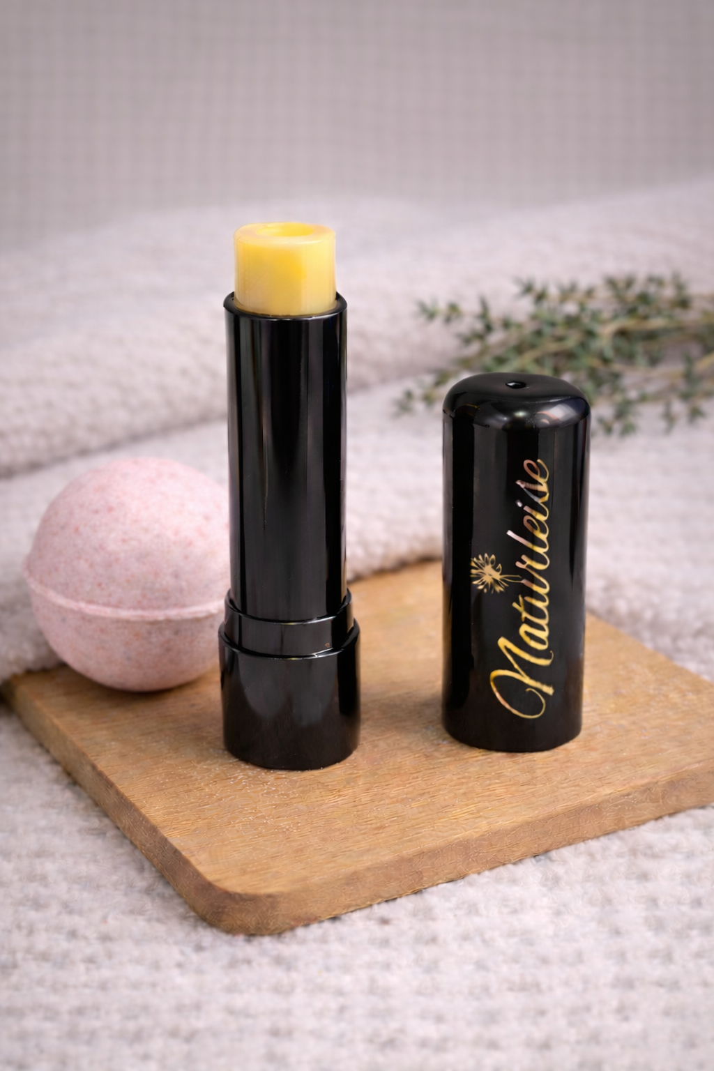 Badebombe für empfindliche Haut mit Thymian und Kamille ist Teil dieses liebevoll zusammengestellten Pflegesets und steht für eine sanfte, natürliche Pflege.
